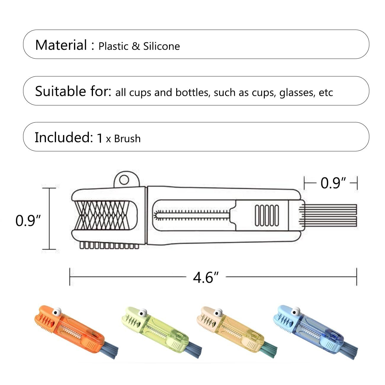 Our cleaning brush is composed of 4 parts: Crocodile-shaped brush: matches the cup mouth to clean stubborn stains around the cup mouth. Soft Brush: Clean the narrow grooves on the inner wall of the cup cover. Corner brush with hard bristles: Remove the dirt in the corner groove of the container. 180 degrees rotation