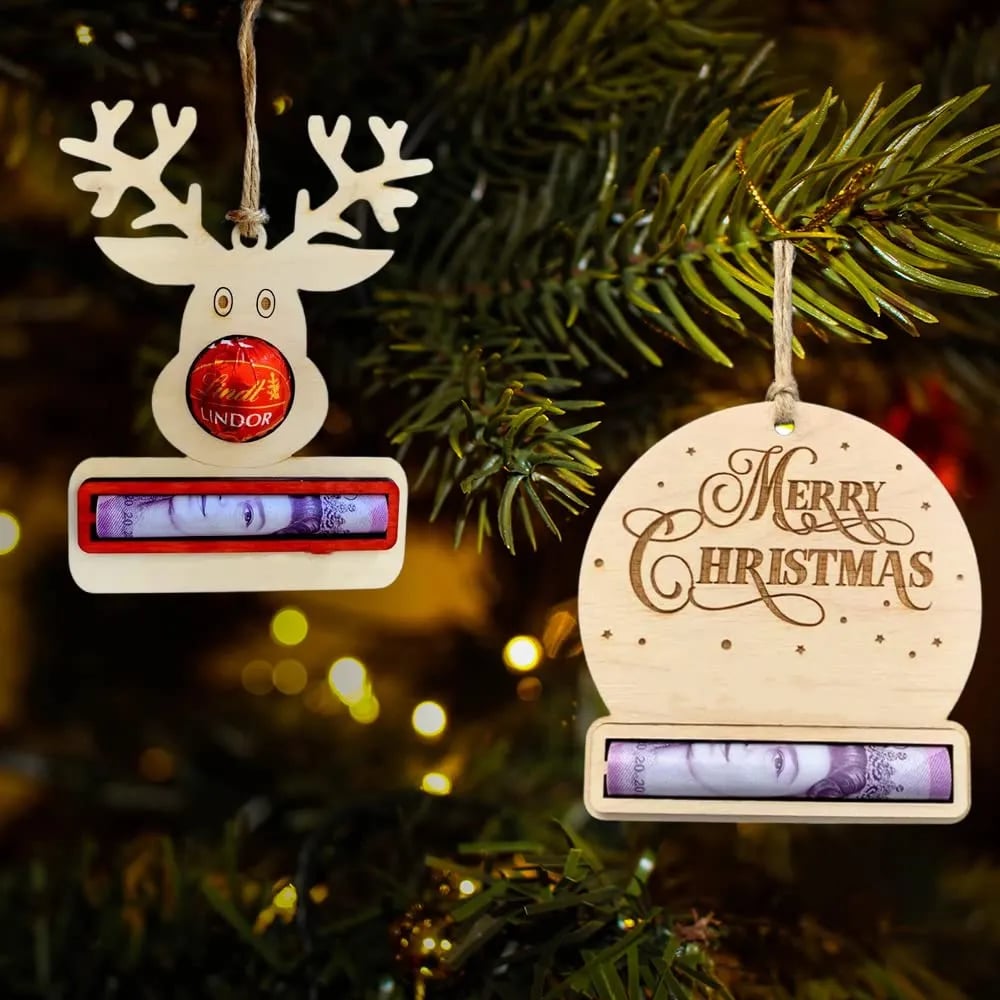 💕Personalized hand-carved money and chocolate tree decorations are a fun and exciting way to give money and chocolate as gifts this Christmas.