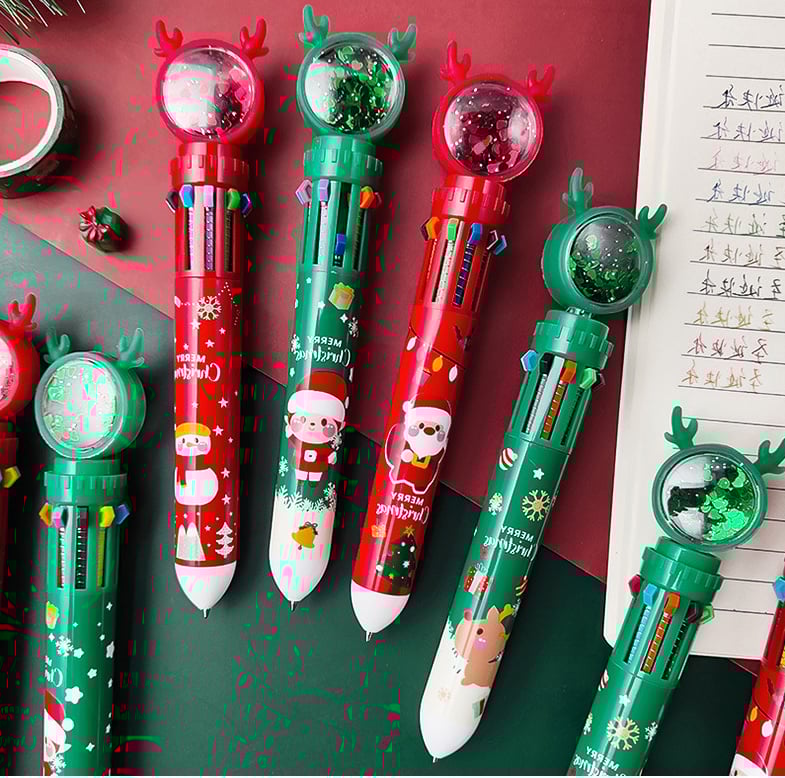 Christmas glitter decorative ballpoint pens with a variety of colors.