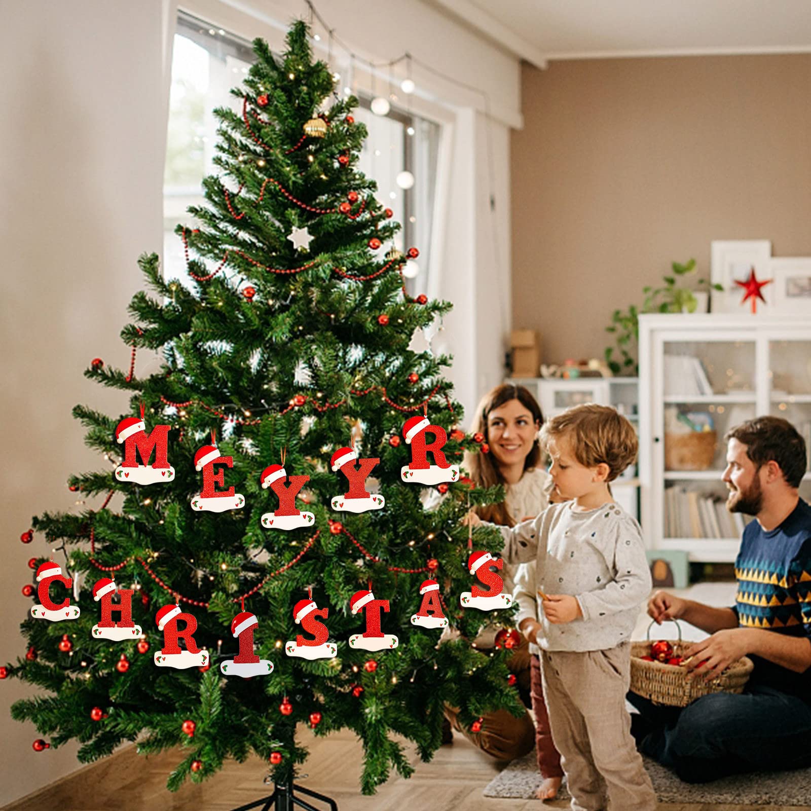 🎄Material: wood and acrylic, each letter jewelry is equipped with a red ribbon lanyard.