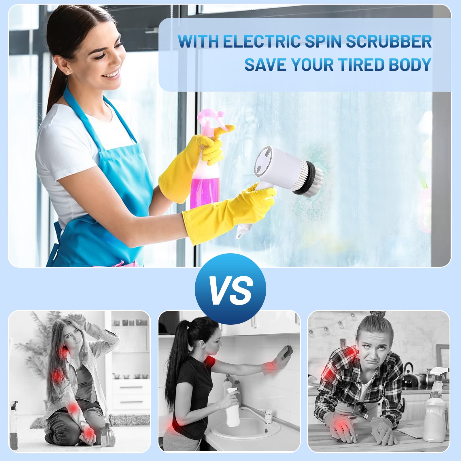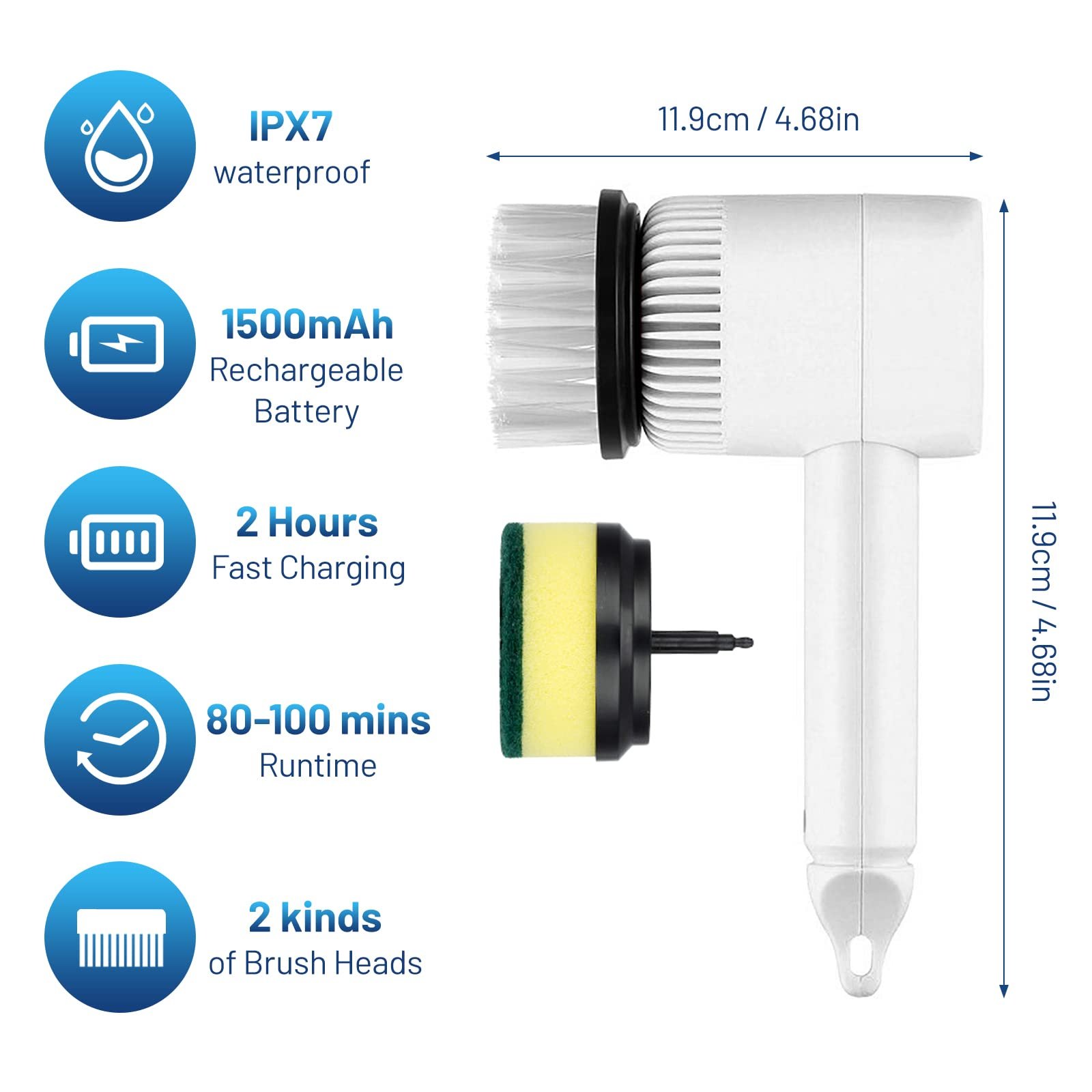 Product Description: Electric Spin Scrubber for Bathroom Cleaning Tools, Portable Power Shower Scrubber Rechargeable, 2 Replaceable Brushes Head for Bathtub Tile, Grout, Sink, Kitchen, Stove Cooker Windows Sill, Tiles, Walls, Stove, Cooker etc, is So Simple to Use, You Just Push The Button And Go To it! Make You Cleaning so Much Easier And Convenient to use.