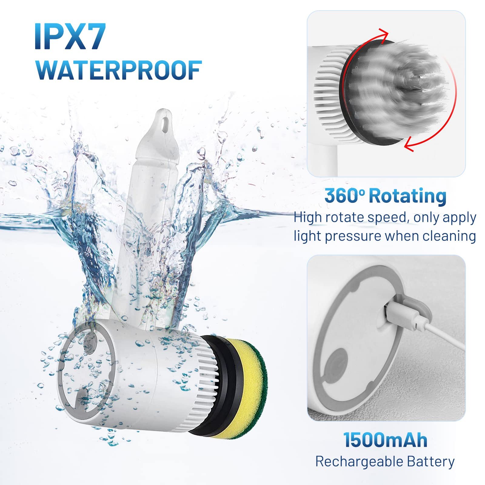 Cordless & Cleaning: Handheld scrubber is ergonomically designed to be portable, lightweight, comfortable to hold and easy to clean, just turn on the switch, can easily complete the cleaning task for you. (Note: dry storage is more prolonged life)