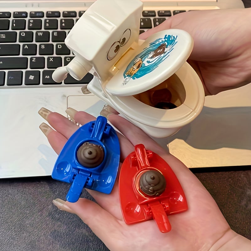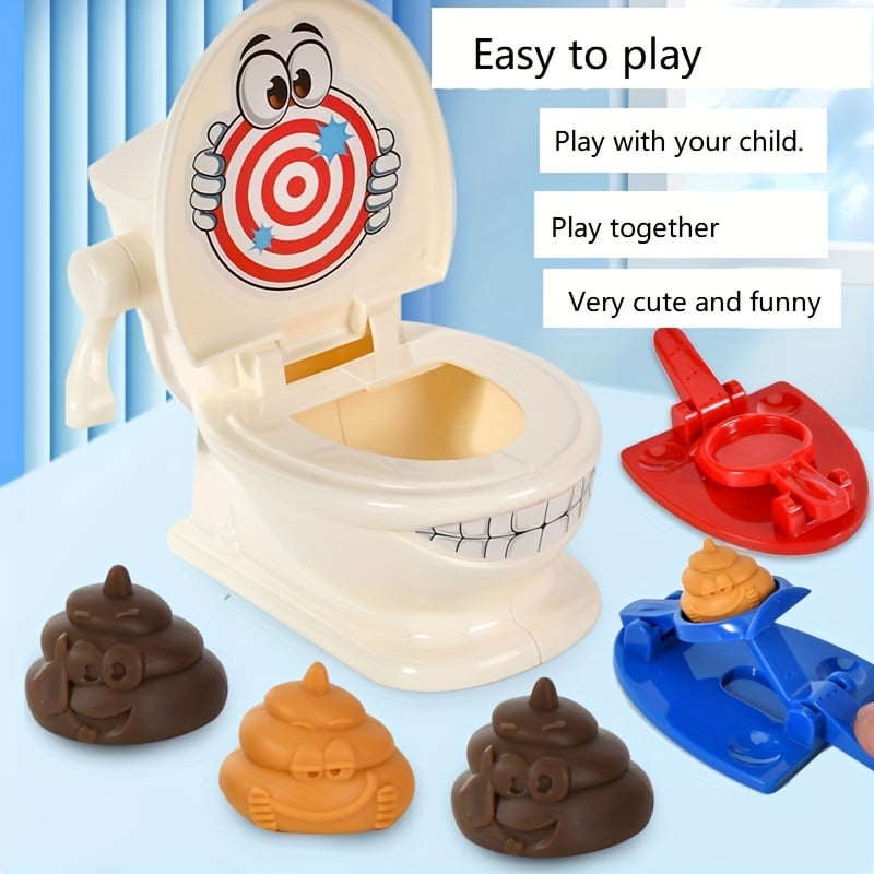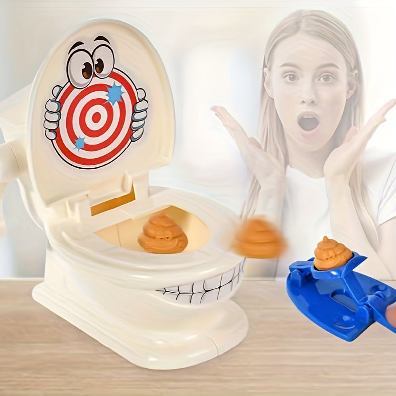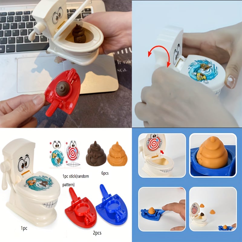 The Toilet who's flush with funny jokes, 6 plastic poop toys, and 2 launchers