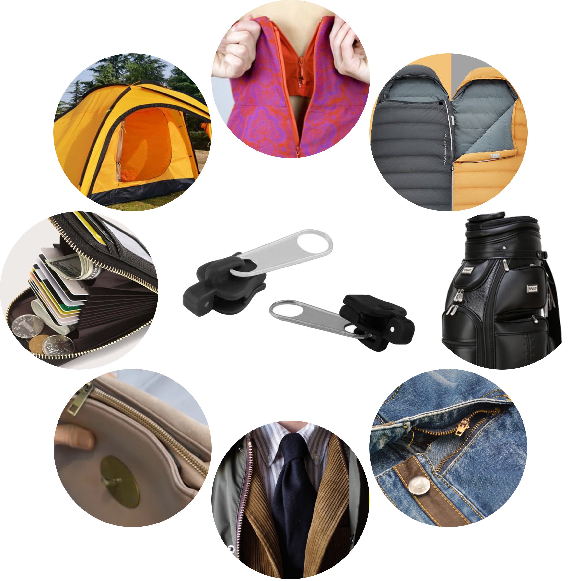 • DURABLE & PRACTICAL - Universal Sizes. Works on most common zipper mishaps including split zipper tracks, broken sliders and up to 3 missing teeth. It fits for jeans, skirts, golf duffle bags, sleeping bags, purses, jackets, suitcases, tents, etc.