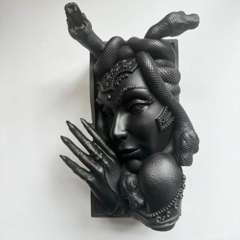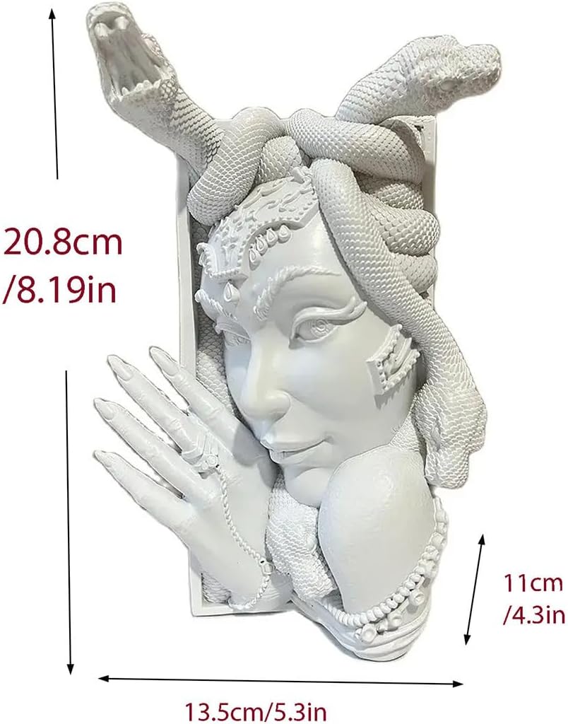 3. Measuring about 8 inches tall, the Medusa heads feature detailed sculpting of her fearsome facial features and serpentine locks frozen for eternity in stone.