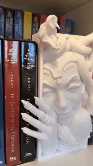 Product is 3D printed with PLA plastic and very light weight. The booknook is designed to go in between books and not useful as a bookend. If you have questions or concerns, please feel free to reach out.Add a touch of fantasy to your home decor with the Medusa Booknook. This cool medusa statue is perfect for any fantasy book lover and will make a great addition to your bookshelf.