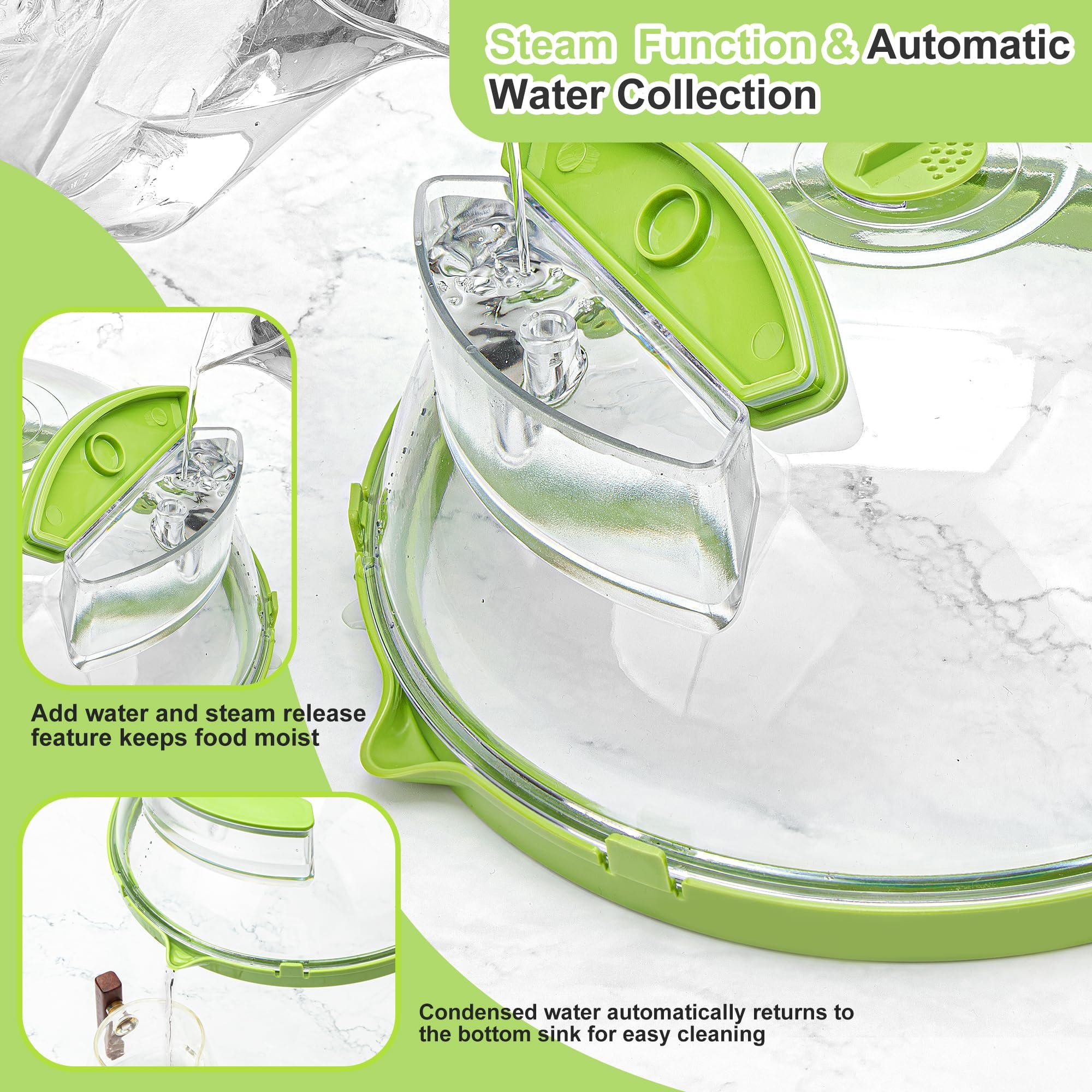 Keep Food Fresh: The microwave lid cover for microwave food comes with a water reservoir. Add water before use to generate steam during heating, increasing humidity and helping retain the food's moisture and flavor.