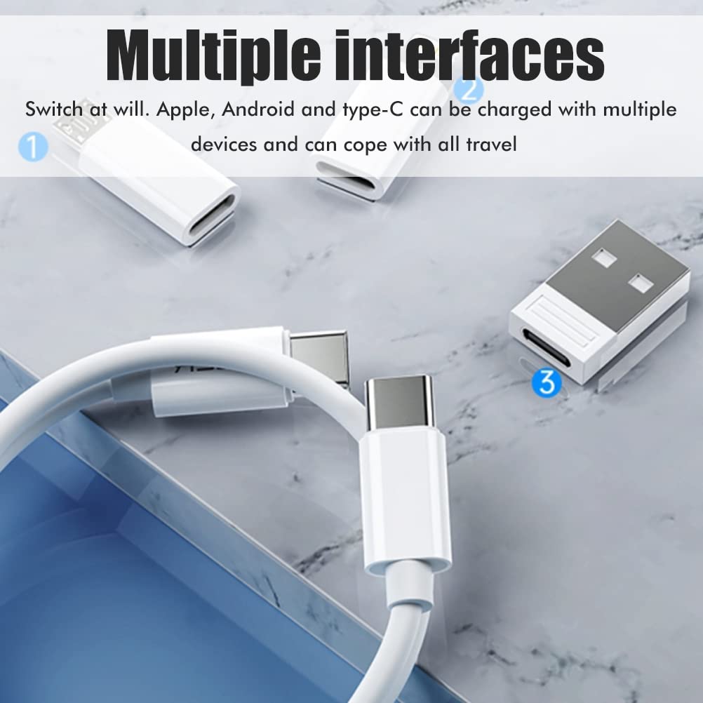 Multifunctional: Interchangeable charging and transfer cables. It has four different ports: Compatible for Android, Lightning, USB and Type C cable, allowing you to convert it to the type of port you need for data transfer, charging, and more.