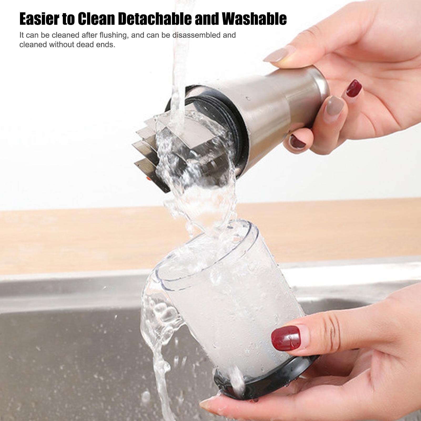 Easy to Clean: The press garlic chopper crusher is electroplated and has a smooth and bright appearance, which effectively prevents stains and which makes the food chopper easy to clean. And the manual food chopper is easy to disassemble for quick cleaning, only taking 2 minutes to clean under running water.