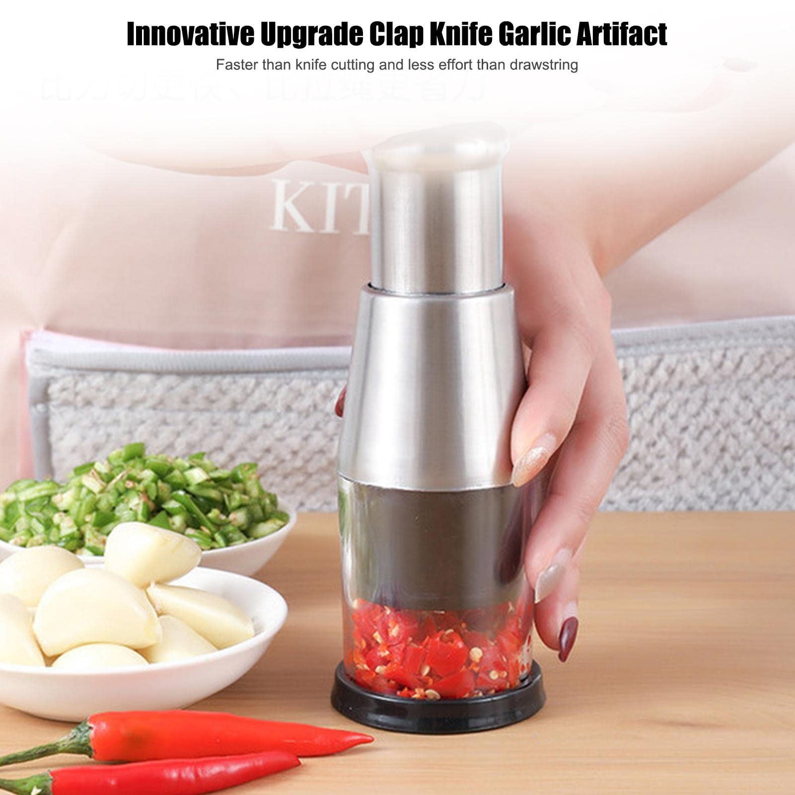 Excellent Material: The blades of the manual vegetable chopper garlic masher is made from stainless steel. The delicate blades are rust-proof, not easy to deform, not easy to rust, impact-resistant, wear-resistant, and durable.