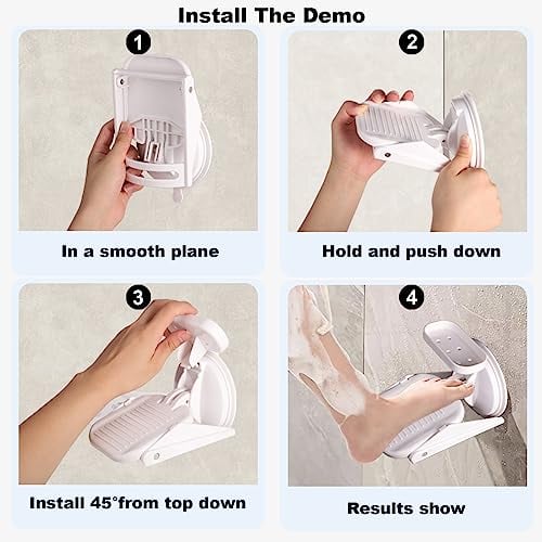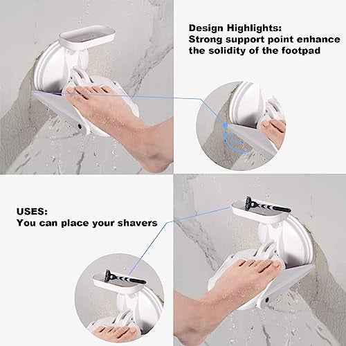 Product Material: Our shower foot stand is made of ABS plastic, which is sturdy and durable. It adopts double-in-one design of sticky and suction cups to make the adsorption more firm and not easy to fall off. You can left to stand for a while before use, the longer it is left, the stronger the suction will be.