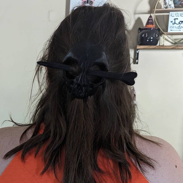 The bone will go through only a portion of your hair. Gently test how much hair to push the bone through. These are waterproof, lightweight, and the colour won’t chip.
