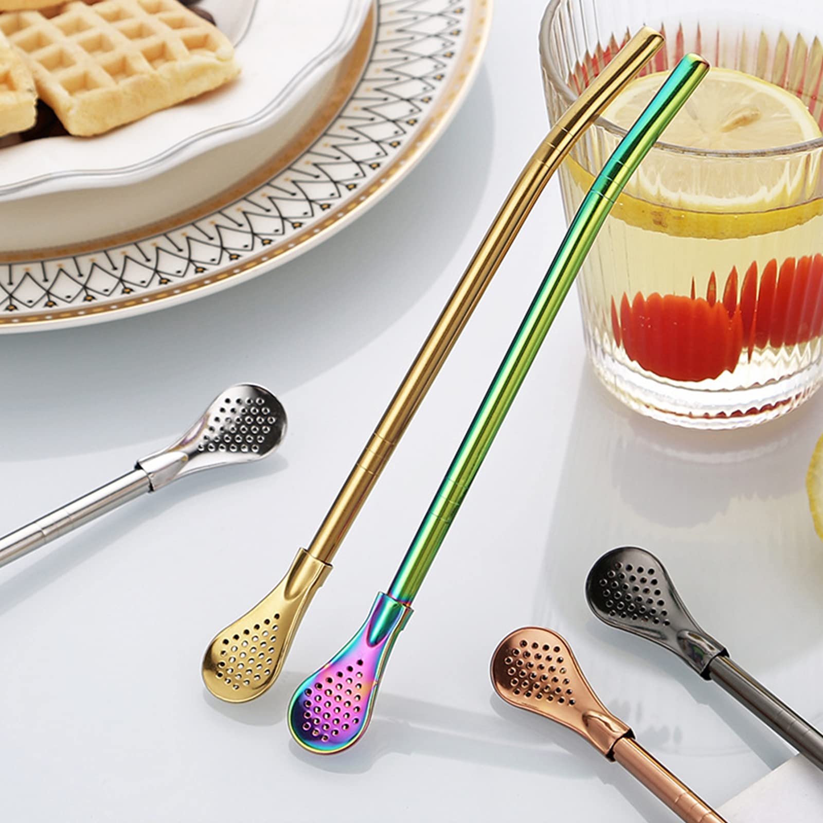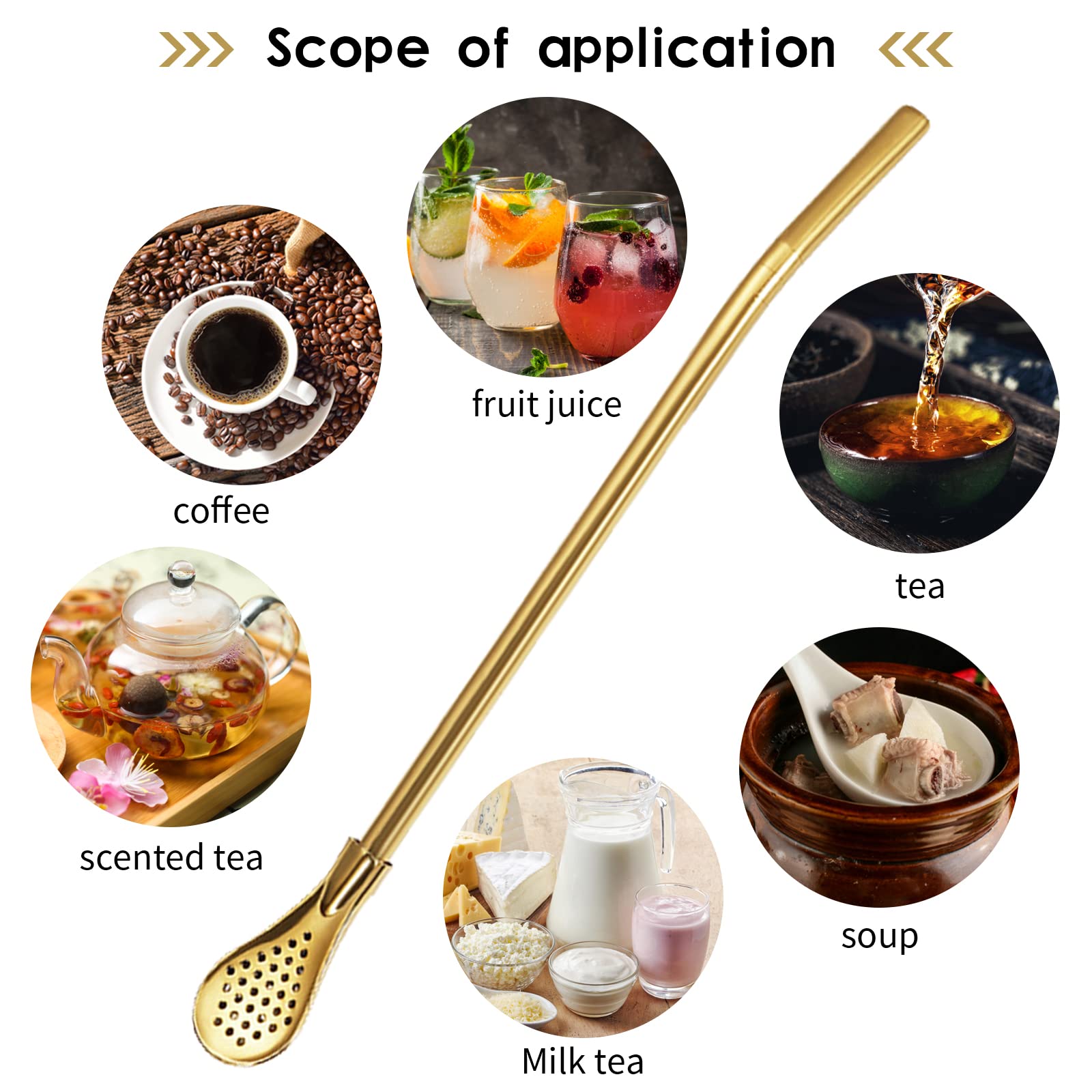 Wide Use The stainless steel straw with spoon is suitable for different drinks such as loose tea, cocktails, yerba mate, coffee, lemonade and more. Can be widely used in restaurants, bars, cafes, kitchens, parties, banquets, picnics, etc. Can be used.