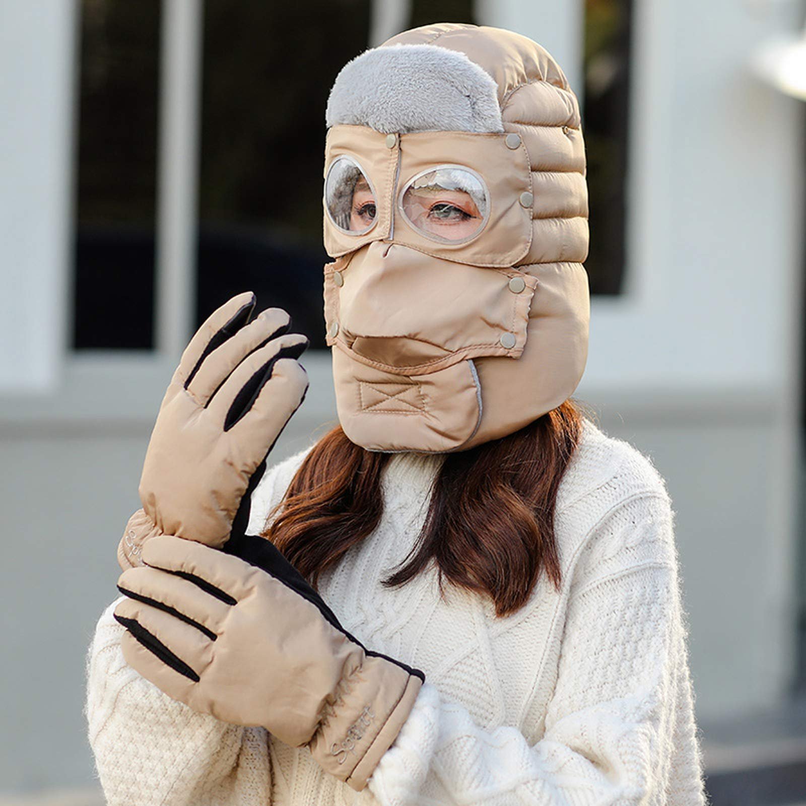 3-in-1 hat, mask and scarf set: In the package, there is 1 visor, 1 detachable face shield and 1 windproof glasses. Using our fashion suits, you can spend a warm winter without frostbite. The complete winter suit is very suitable for cold weather and can definitely protect you from the cold and air!