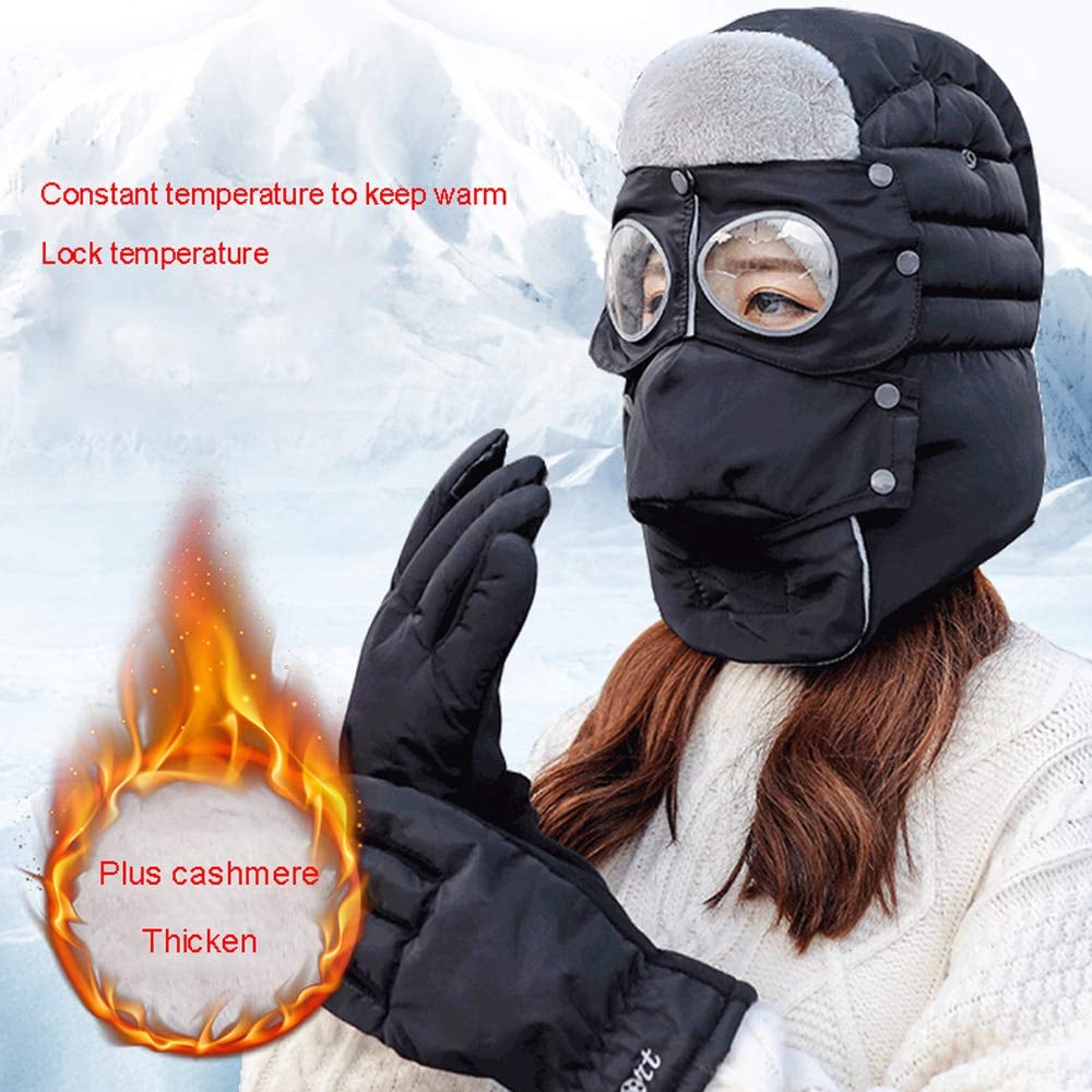 Warm Winter Hat With Earmuffs Face Mask Goggles