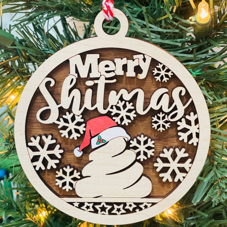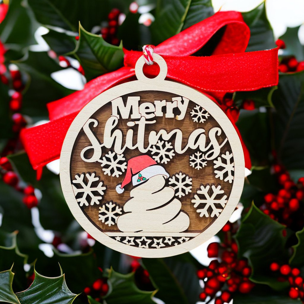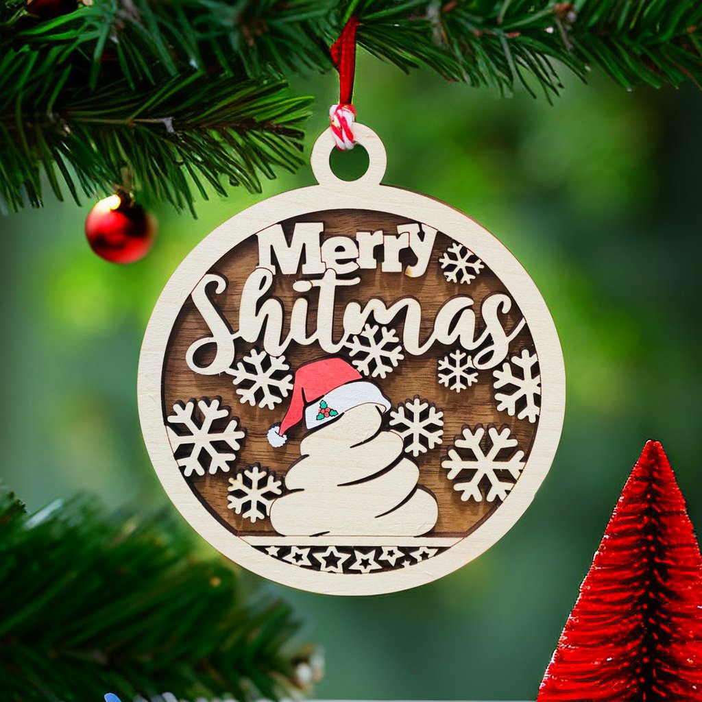 Wooden Merry Shitmas Ornament